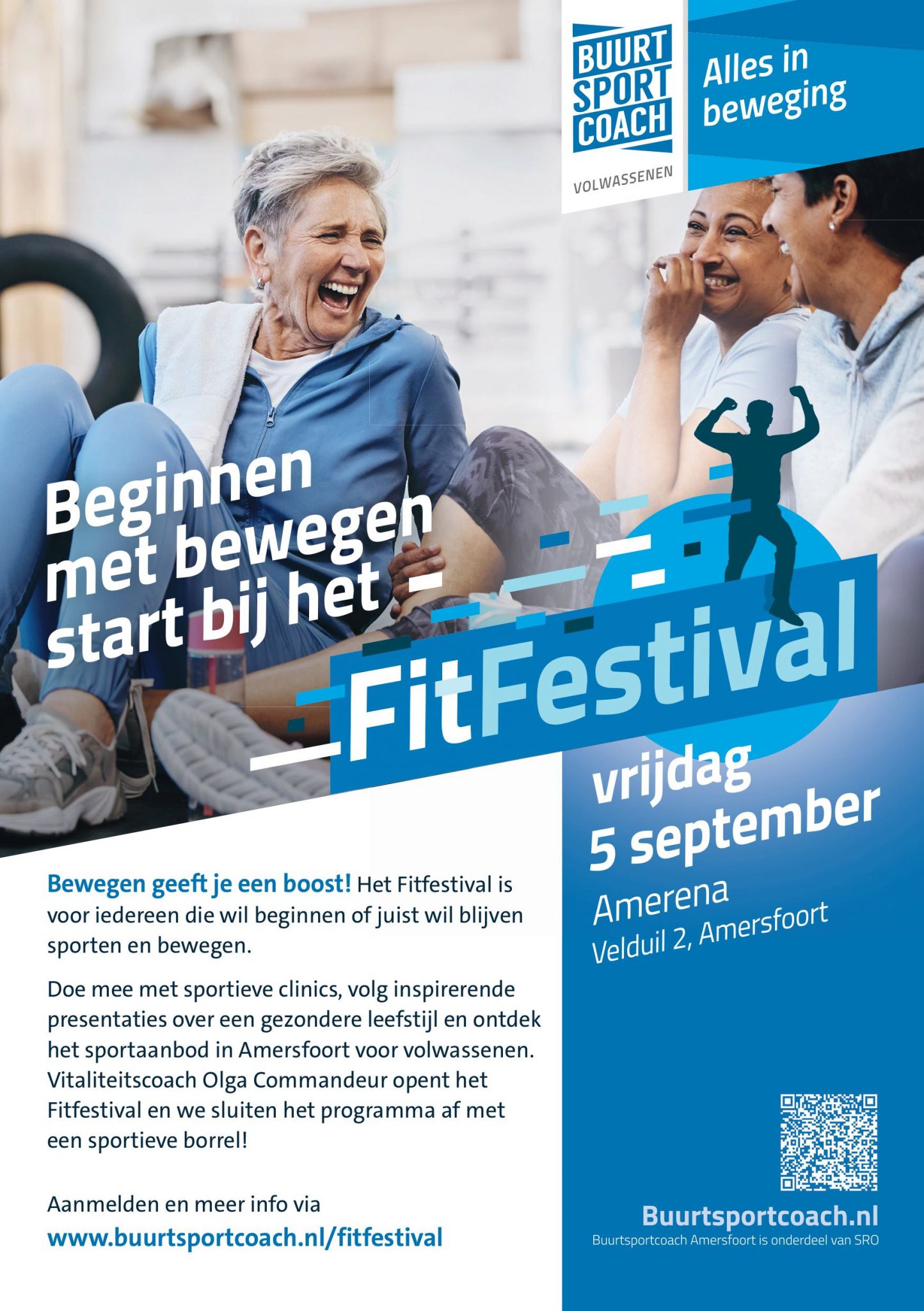 Vrijdag 5 september is het FitFestival in de Amerena voor de oudere generatie om kennis te maken met verschillende sporten om zo lekker fit te kunnen blijven. En wordt geopend door de enige echte Olga Commandeur.